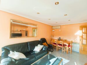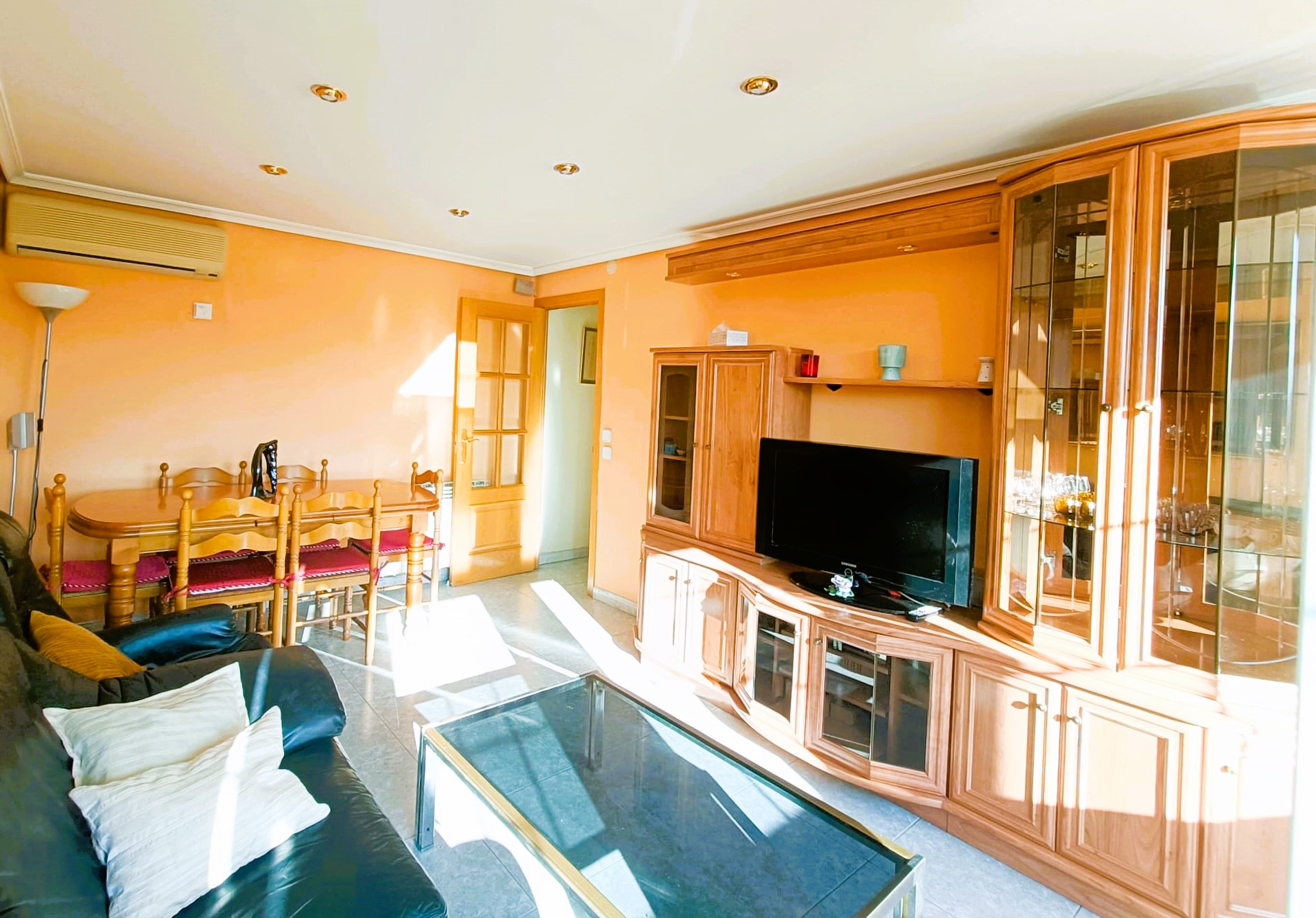 El salón es muy luminoso, tiene la terraza incorporada y con vistas despejadas a la ciudad.