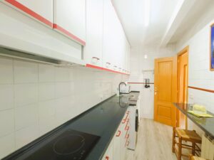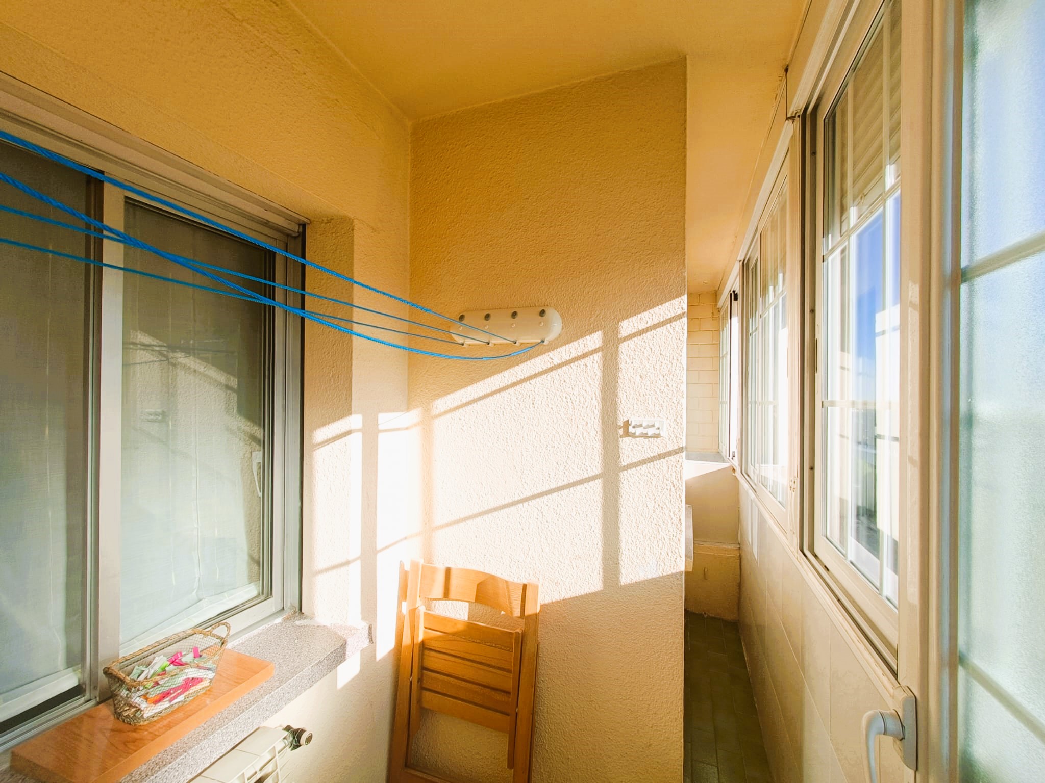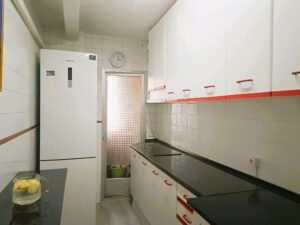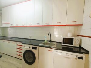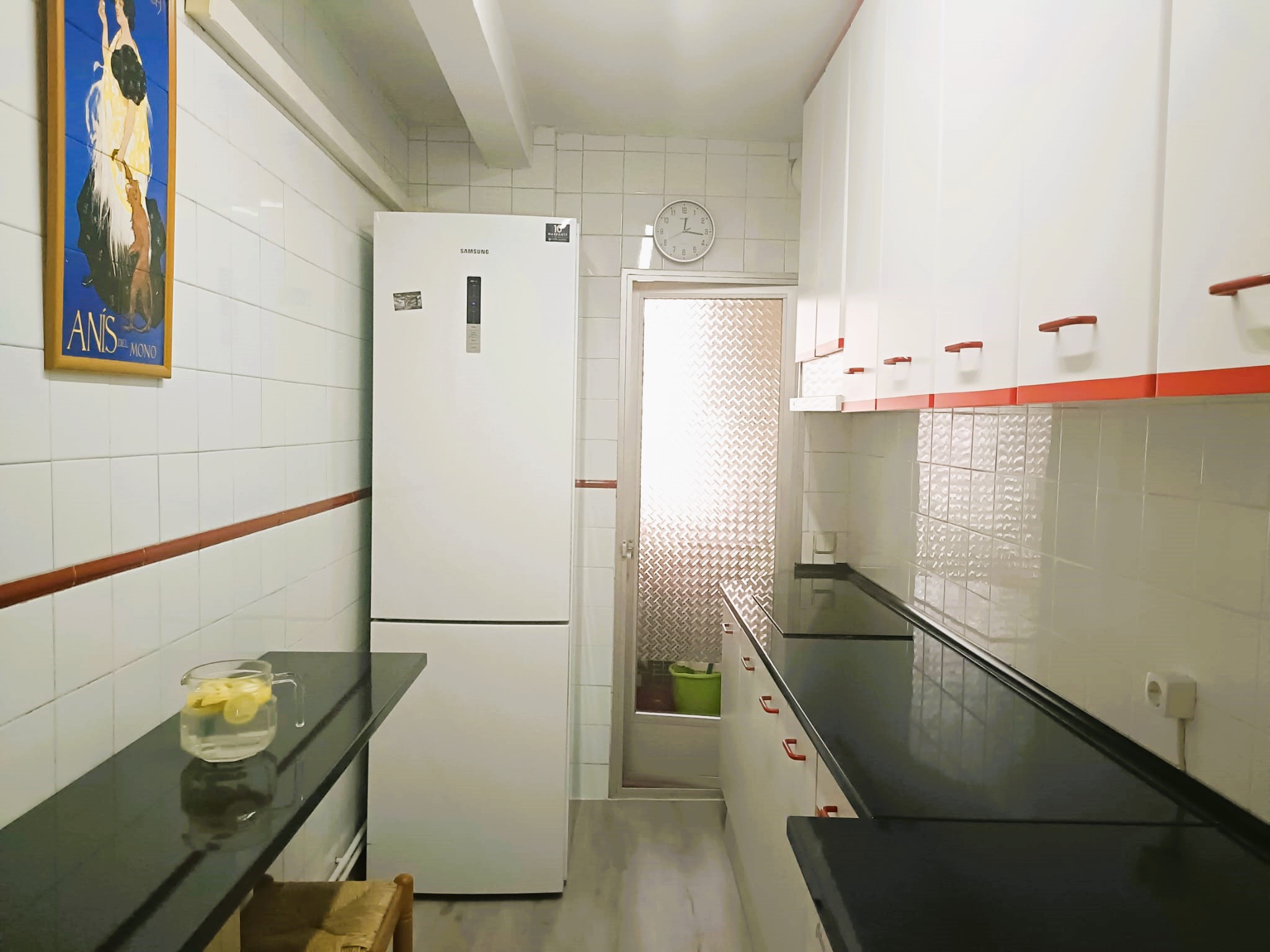La cocina está equipada con todos los electrodomésticos (nevera, lavadora, lavavajillas, microondas, vitrocerámica) y dispone de una terraza-tendedero // espacio multiuso