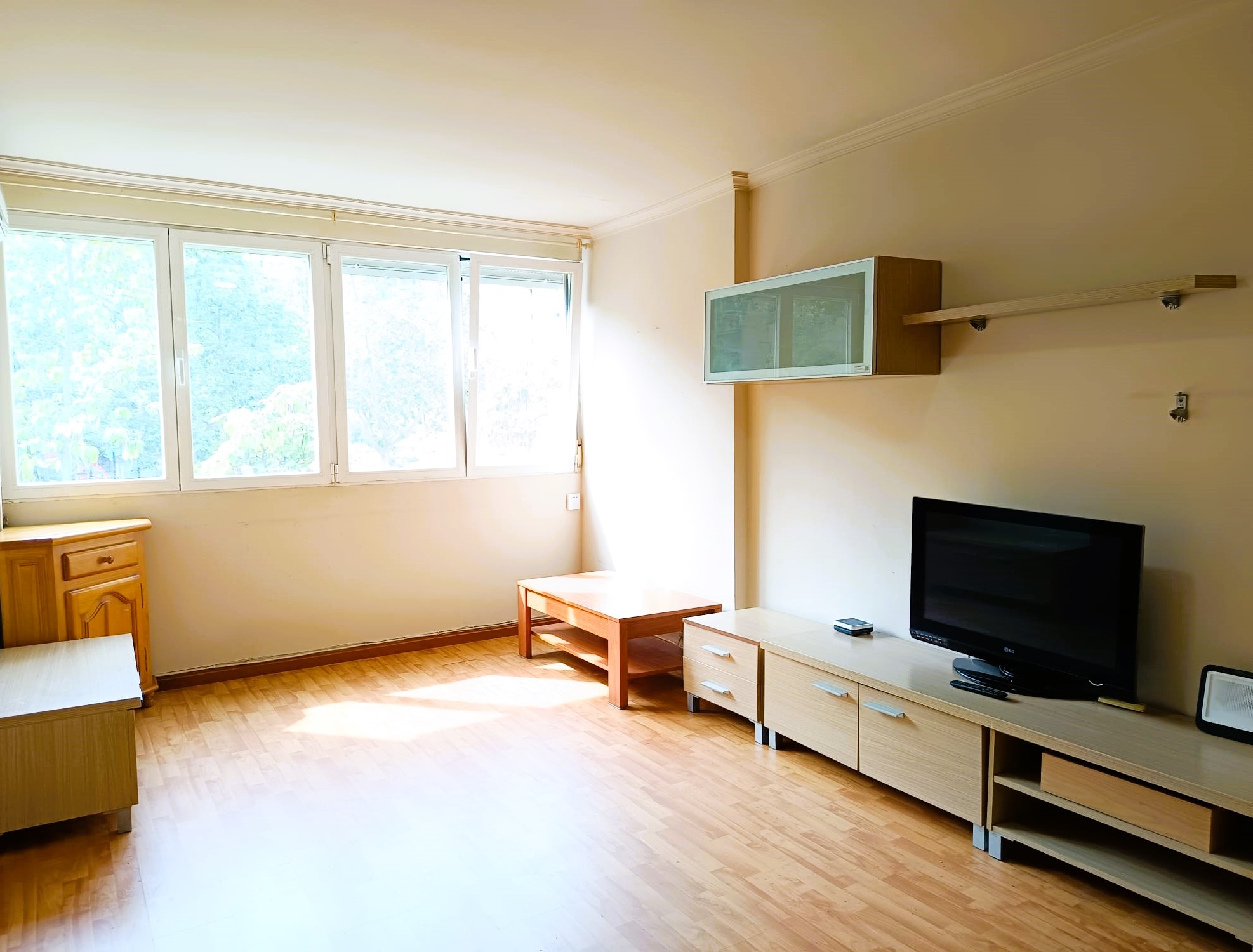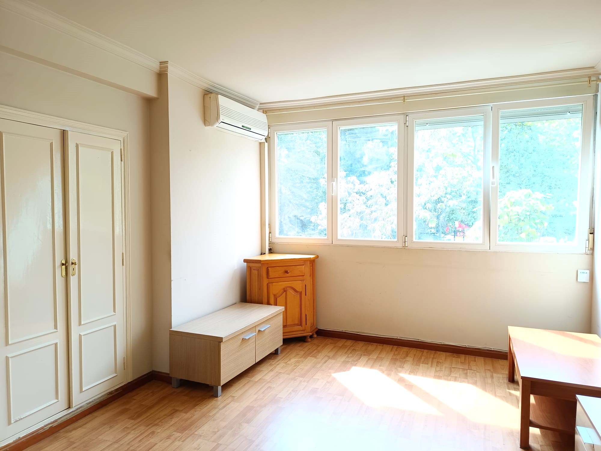 El piso se encuentra en buen estado y cuenta con paredes lisas, 4 amplias ventanas Climalit oscilobatientes, que aseguran aislamiento y confort al mismo tiempo que aportan mucha luz natural y sensación de amplitud, además de suelo de tarima, que aporta un toque moderno