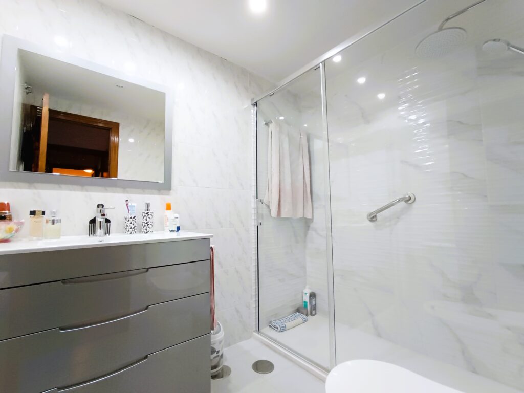 El dormitorio principal, amplio y luminoso, dispone de 2 armarios empotrados y un baño en suite reformado recientemente con plato de ducha con suelo antideslizante y mampara de cristal.